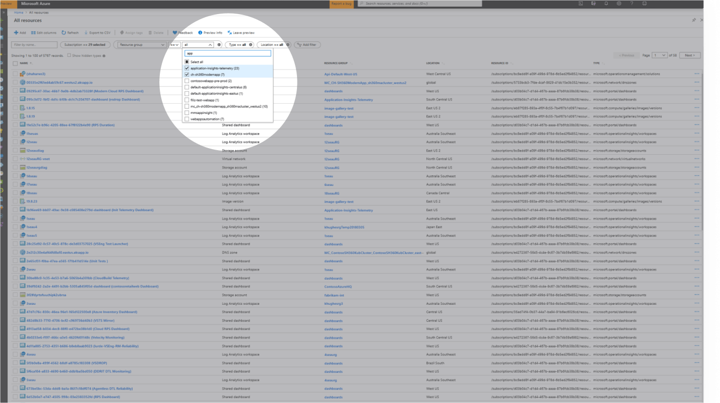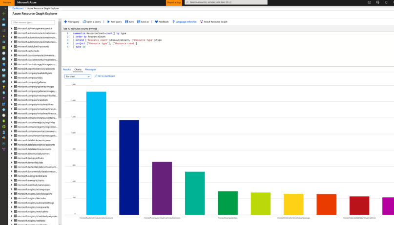 Use powerful queryies to learn more about your resources. For example, count resources by type or run advanced queries such as identifying resources whose IP addresses are configured by subscription.