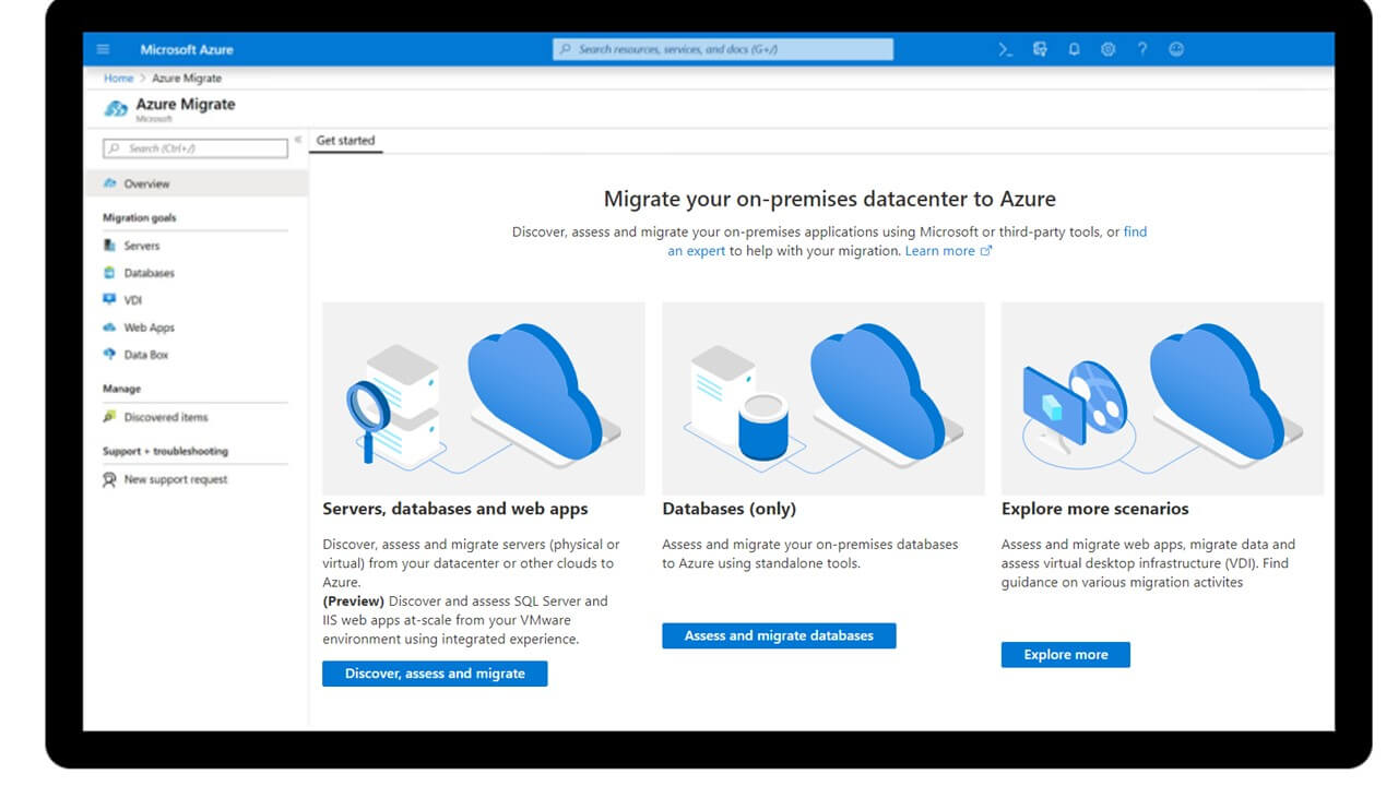 Better prepare your database workloads to move to Azure using the suite of Azure migration tools. First, use Azure Migrate to discover your on-premises data estate, assess migration readiness, and choose the best destination for your databases. Then, use Database Migration Service to move your on-premises databases to Azure.