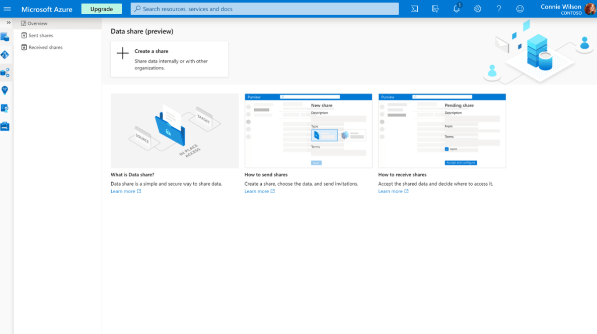 Share data within or between organizations using Microsoft Purview Data Sharing (in preview).