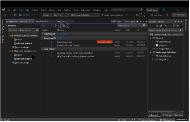 Take advantage of the code hosting, developer community, and collaboration tools available on GitHub. Create and publish repositories and manage pull requests on GitHub, and review source code right inside Visual Studio. Set up GitHub Actions continuous integration and continuous delivery (CI/CD) workflows from within Visual Studio in just a few clicks.