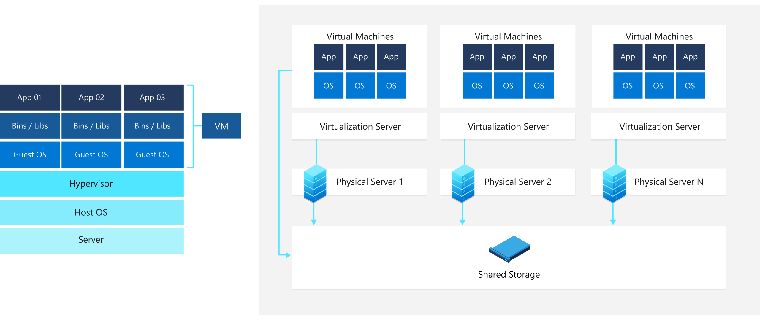 And, because VMs are independent of each other, they're also extremely portable. You can move a VM on a hypervisor to another hypervisor on a completely different machine almost instantaneously.