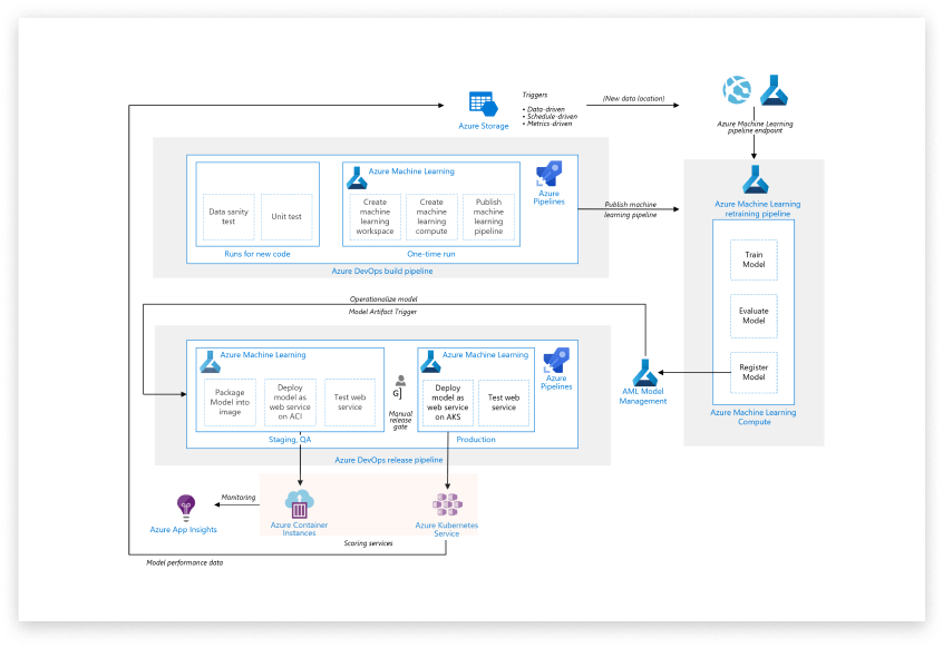 Learn how to implement continuous integration (CI), continuous delivery (CD), and retraining pipeline for an AI application using Azure DevOps and Azure Machine Learning. The solution is built on the scikit-learn diabetes dataset but can be easily adapted for any AI scenario and other popular build systems.