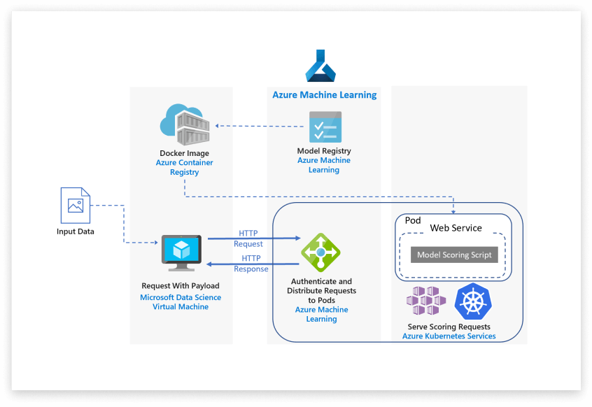 Explore how to deploy Python models as web services to make real-time predictions using Azure Kubernetes Service (AKS). Machine learning models deployed on AKS are suitable for high-scale production deployments.