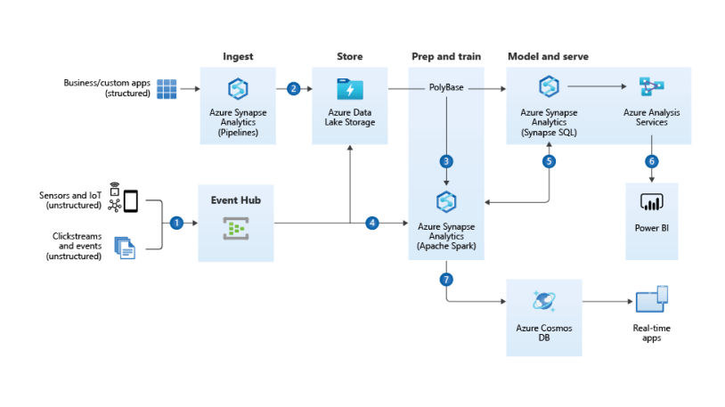 Build data pipelines capable of ingesting millions of real-time events per second with Azure Event Hubs or Azure IoT Hub. Expand your datasets for enhanced insights and safely collaborate with others in just a few clicks with Azure Data Share. Empower everyone in your organization to perform analytics across all your data, with the ability to scale to petabytes of data, extracting insights on the fly with Power BI and Azure Synapse.