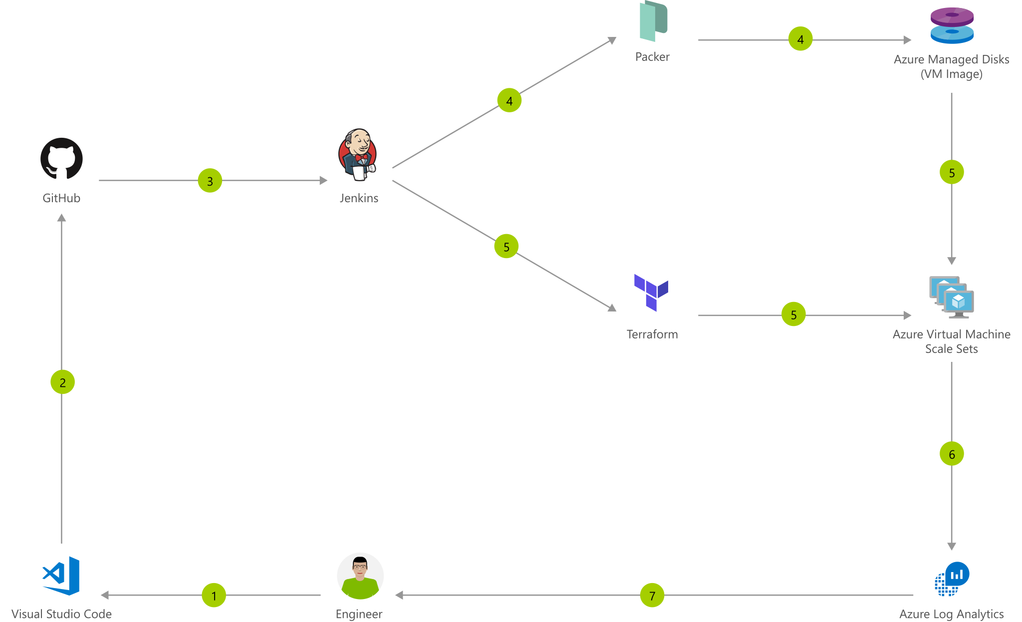 Immutable Infrastructure CI/CD using Jenkins and Terraform on Azure Virtual Architecture overview