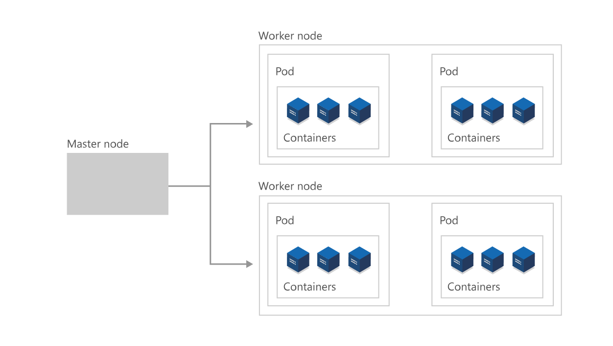 At the highest level, Kubernetes is organized as a cluster of virtual or on-premises machines. These machines—called nodes—share compute, network, and storage resources. Each cluster has one master node connected to one or more worker nodes. The worker nodes are responsible for running groups of containerized applications and workloads, known as pods, and the master node manages which pods run on which worker nodes.